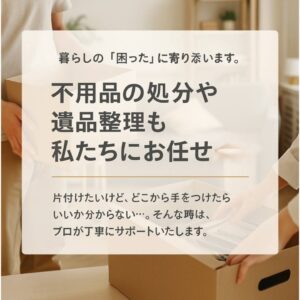 お住まいの不用品処分や遺品整理といった「片付けサポート」も行っています✨